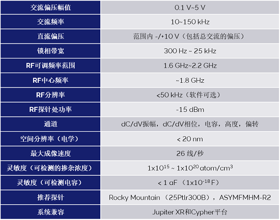 扫描电容显微镜(SCM)是一种表征材料纳米电学性质的原子力显微镜(AFM)成像技术,它使用微波射频(RF)信号来探测半导体和其它种类样品中的电荷,载流子的位置,掺杂水平和掺杂类型(p型和n型)等。全新快速扫描电容显微镜 SCM可以在牛津仪器的 Asylum Research 的快速扫描 Cypher 和 Jupiter XR AFM 平台上使用。