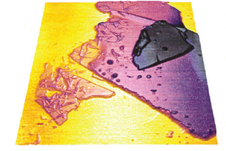 样品CulnS沉积在硅上,电容数据叠加在在3D形貌图上,扫描范围20µm,样品由Northwestern的University M. Cheng和V. Dravid教授提供。