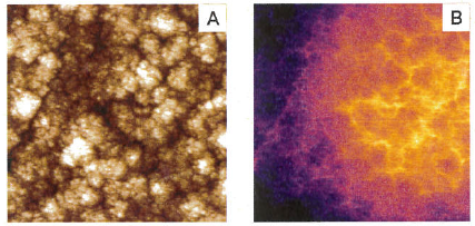 图5 测试电池的电极,扫描范围30µm。a:形貌图;b:电容图;